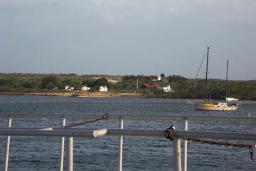 I have also gone walkabout here, as Keith says -- taking off for two days to see more of the country. The boat being small and Keith and my being unused to the company of others for long stretches of time places a periodic strain on both of us. The town of Monte Cristi, described as "mas turistica" (more tourist-like) than Manzanillo, appears slightly less touristy than expected. There are few cars, some solid houses mixed with the shacks, and many men gathered at bars and docks along the beach. As in Manzanillo, the people are also incredibly friendly. Several miles from Monte Cristi is Morro Mountain. I hike up the mountain until exhausted, then walk across the pass between two peaks to find a small but beautiful beach surrounded by overhanging cliffs. Immediately recall my rock-climbing friend Peter's advice to find overhanging cliffs to climb so if you fall off, at least you won't scrape yourself to death on the way down. The beach is deserted, so I set about climbing them. Naturally, several locals immediately arrive. They begin taking pictures of the crazy American on the cliffs. They use my camera to do so. They shout first to ask me for permission to use the camera and then for directions on how to do it. I shout back answers to both in my broken Spanish, while hanging with my fingertips from the rock. Cannot help help feeling that life is bizarre.