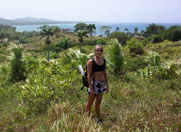 About 20 miles outside of Puerto Plata, the rocky, palm tree studded hills with brief glimpses of the ocean, drew us strongly and we decided to spend the afternoon hiking up a particularly interesting bluff topped hill.