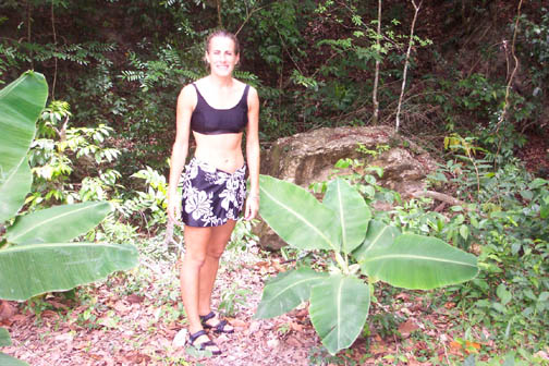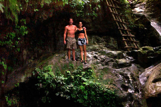On the way back, Cookie, recognizing that we were a bit more adventurous than the average tourist, showed us how to skirt the tops of the waterfalls so that we could jump into the deep pools at their base or slide down the deep channels cut into the rock.