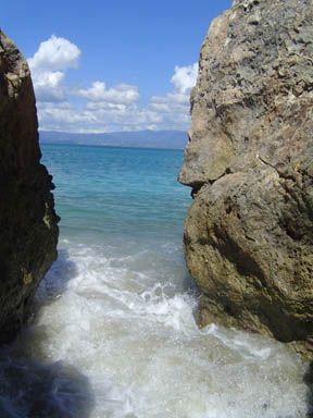 Playa Pelicano, or Pelican beach, on the west coast of Caja, is perfect to stretch out on -- under the rocky cliffs, it's totally sheltered from the prevailing easterly trade winds.