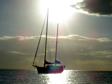 Solace is silhouetted against the sun as we head back for dinner.