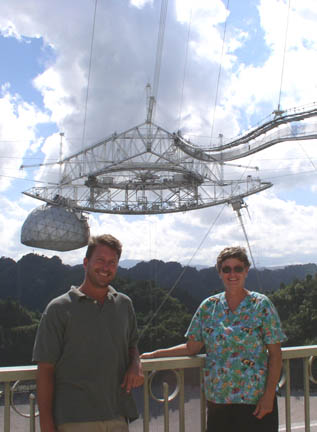 Keith with Reggie, Randy's girlfriend from Aditi, in front of the Arecibo telescope.