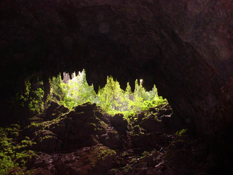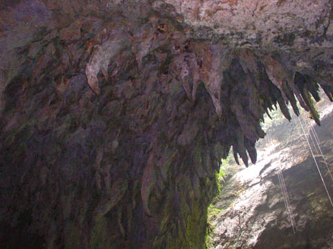 The entrance to the cavern. One of the spots where a rockfall created a new hole in the roof of the cave -- the rains made some new openings too -- glad we missed that.