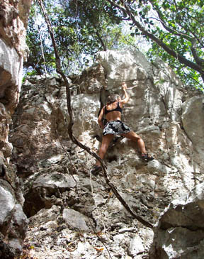 On the way back, Cookie, recognizing that we were a bit more adventurous than the average tourist, showed us how to skirt the tops of the waterfalls so that we could jump into the deep pools at their base or slide down the deep channels cut into the rock.