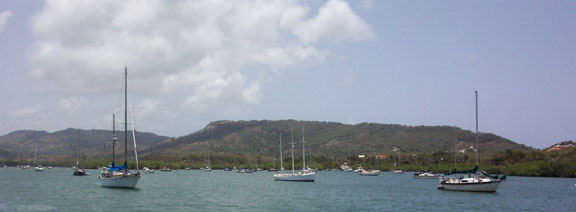 [Continued by Keith: We will most likely be here for a few days as we resupply with diesal and wait for a good weather window. Next stop....the Southern side of Puerto Rico or possibly St John in the Virgin Islands...depends on which way the wind is blowing :) Our current goal is to find a Satellite Phone dealer. We are still not able to get weather reports consistently via radio and Shortwave Reciever. Satellite Phones have become advanced enough to Send Email and Download Weather Reports for about 2 dollars a day, well worth it.]