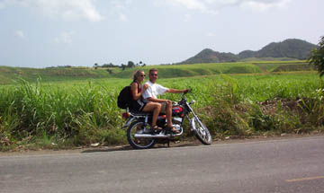 What the "Pica Pollo" (loosely translated as Chicken Hut or Chicken Bite), lacks in accommodation (dirt floors and a thatch roof), it more than makes up in ambiance and price. Chicken roasted over charcoal, Spanish rice, and a side salad will run you about $1.20. Amber and Ben of the Island Trader "Sea Gypsy" have been here for a month and a half and as we popped the top on our 2nd bottle of Brugal, Anejo Rum Superior, the stories turned to the interior of Dominica and the wonders to be found there. We later secured the use of a 115 HP Yamaha motorcycle for the next two days (at a cost of $8 per day) to do some exploring of our own.