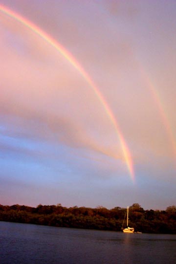 As we enter Puerto Blanco, a double rainbow guides us in.
