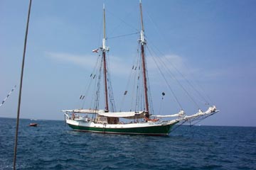 Liberty Clipper, one of the Tall Ships, a traditional old wooden clipper ship down from Boston, Mass. They are headed back up to Rose Wharf. Say hello if you see them.