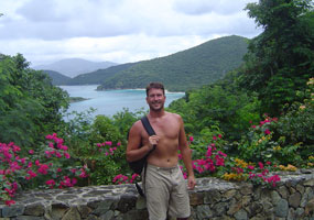 As we entered the quaint village of Cruz Bay in late afternoon, damp and barechested, a dreadlocked local goodnaturedly informed us that going without a shirt was illegal in town and apt to get us fined. Strange rule for the heart of the Caribbean.